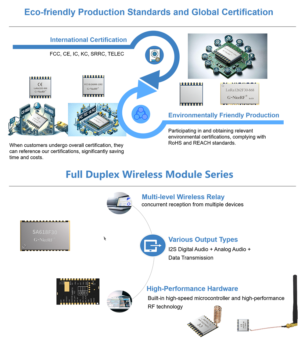 A empresa desenvolveu com sucesso os módulos da série LoRaPRO, que apresentam rede MESH, criptografia AES e tecnologia LBT. Além disso, o módulo Ant+ foi desenvolvido e implementado em massa em celulares customizados. Além disso, módulos de comutação sem fio foram amplamente utilizados nas propriedades da Vanke.