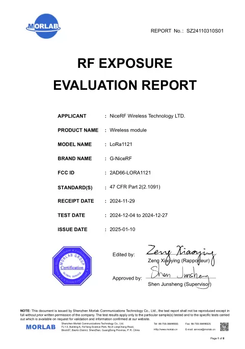 O módulo Lora11211 recebeu oficialmente a certificação da FCC em 10 de janeiro de 2025