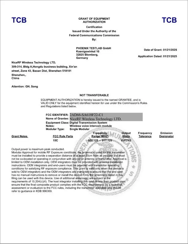 SA618F22-C1 aprovou a certificação FCC em janeiro de 2025