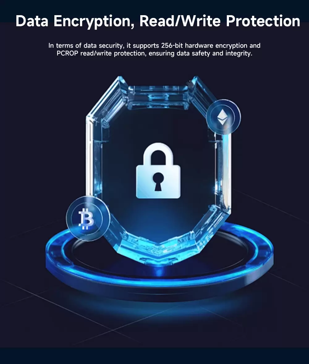 ele suporta criptografia de hardware de 256 bits, proteção de leitura/gravação PCROP, garantindo a segurança e integridade dos dados.