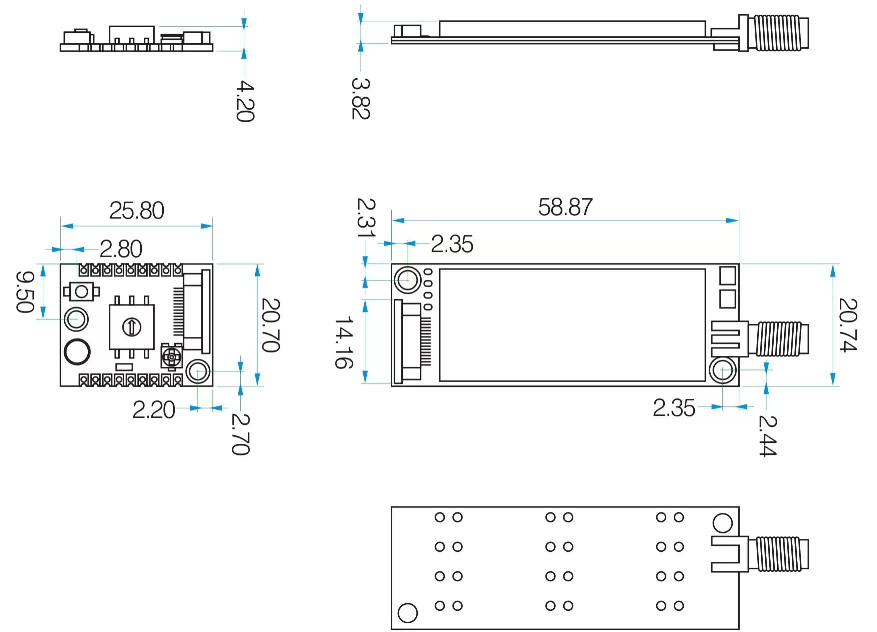 | 20 | FORMIGA | Saída de sinal RF, conexão externa de antena de 50oHm |